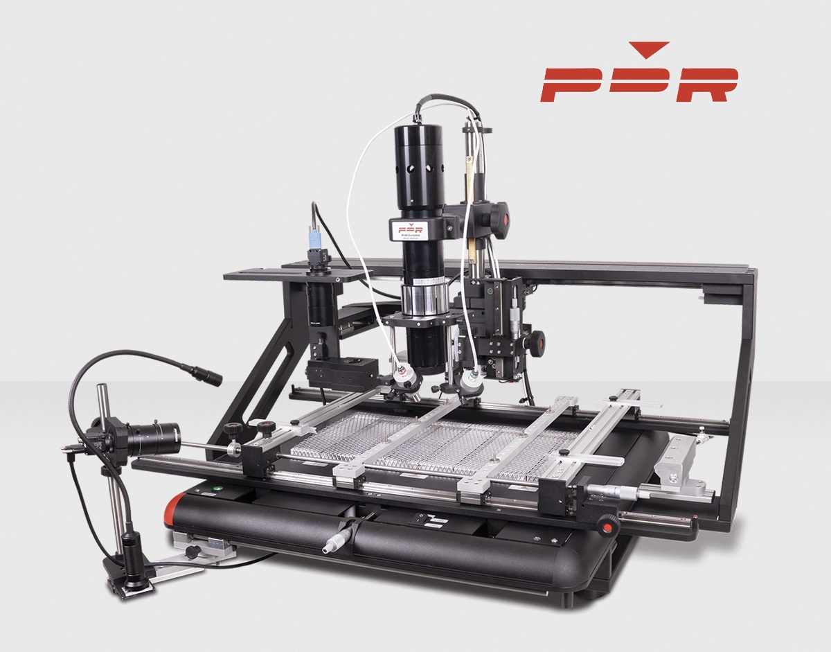 The PDR IR-E6 is the ultimate platform for extra-large PCBs used in aerospace, automotive, and defense industries. It combines a gantry-mounted IR head with powerful preheating for the most demanding thermal requirements.